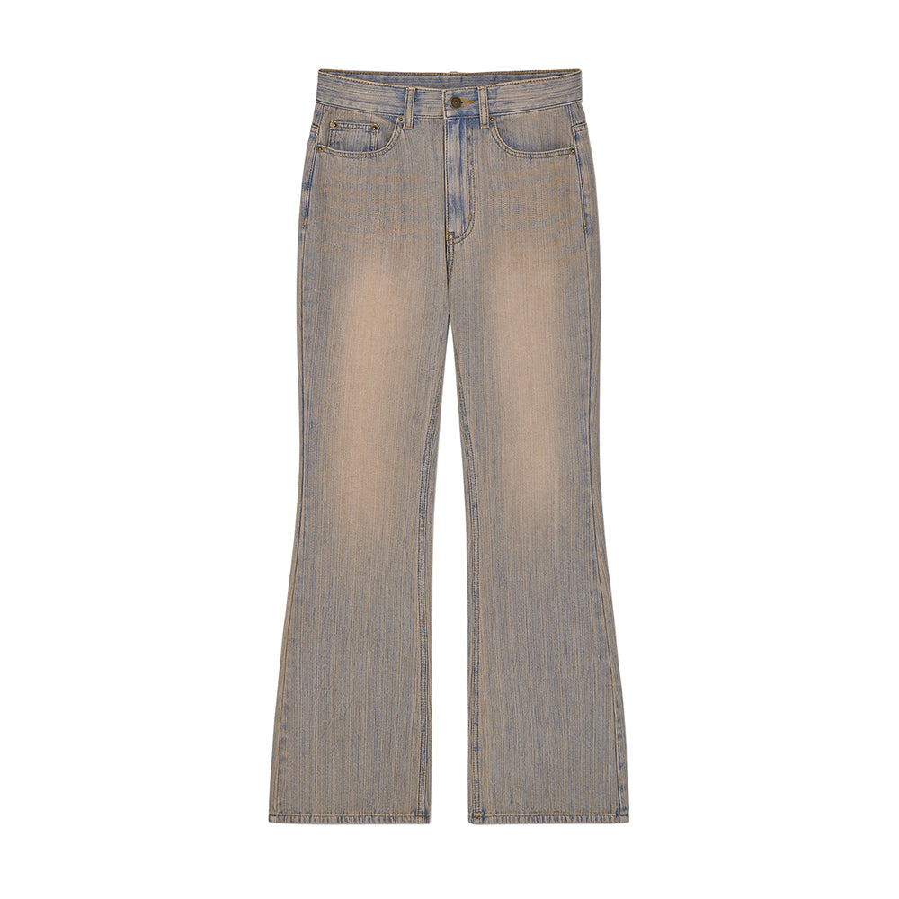 WASHED STRIPE BOOTS CUT DENIM PANTS IN SMOKE BLUE