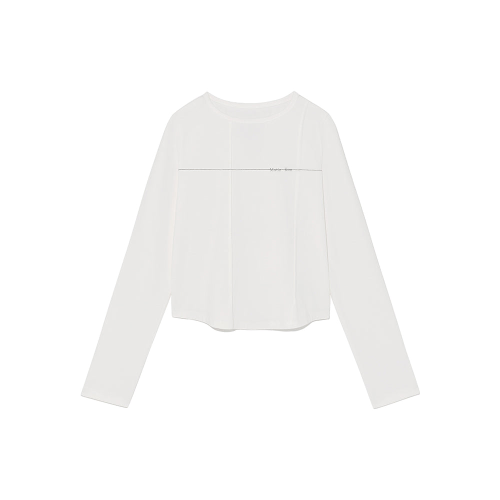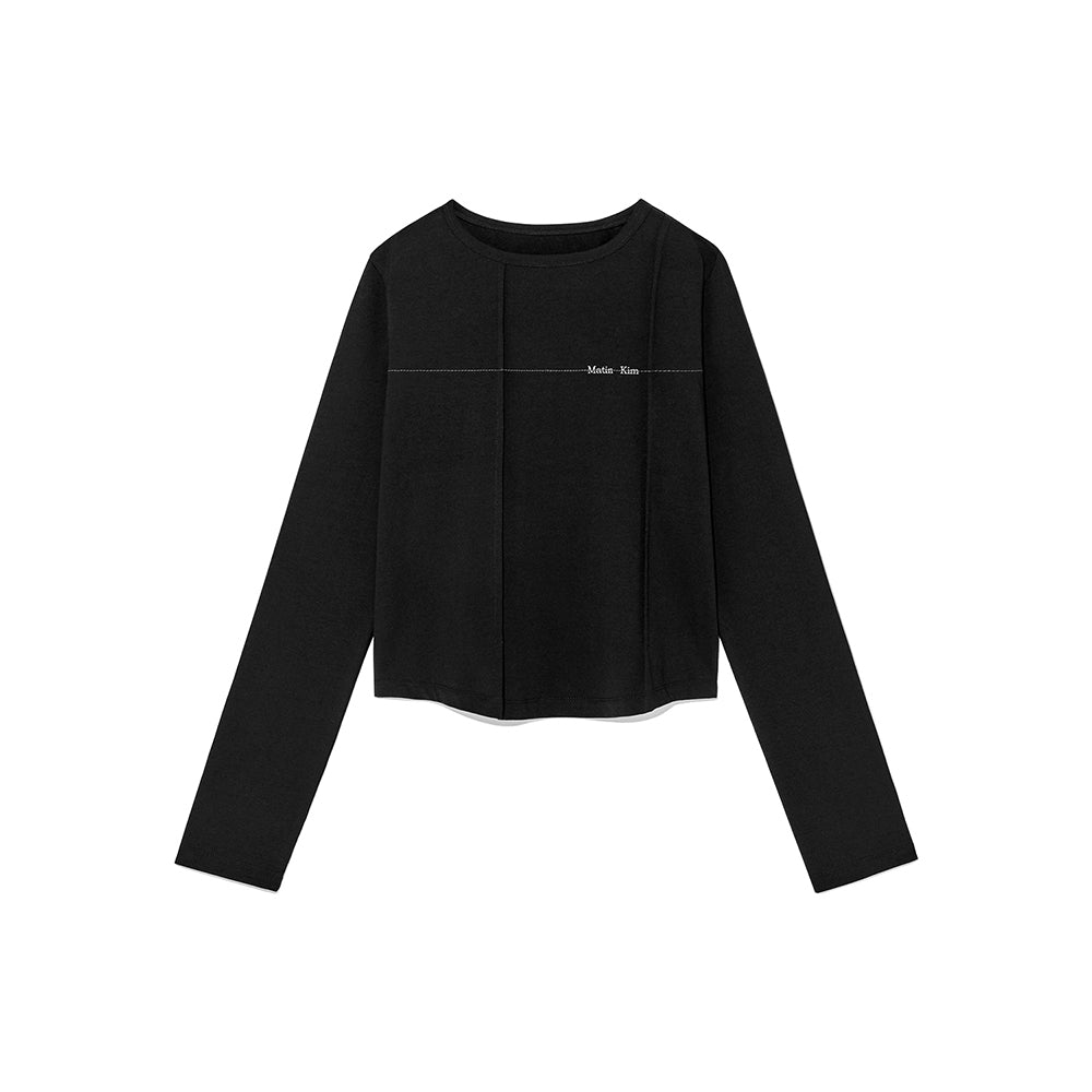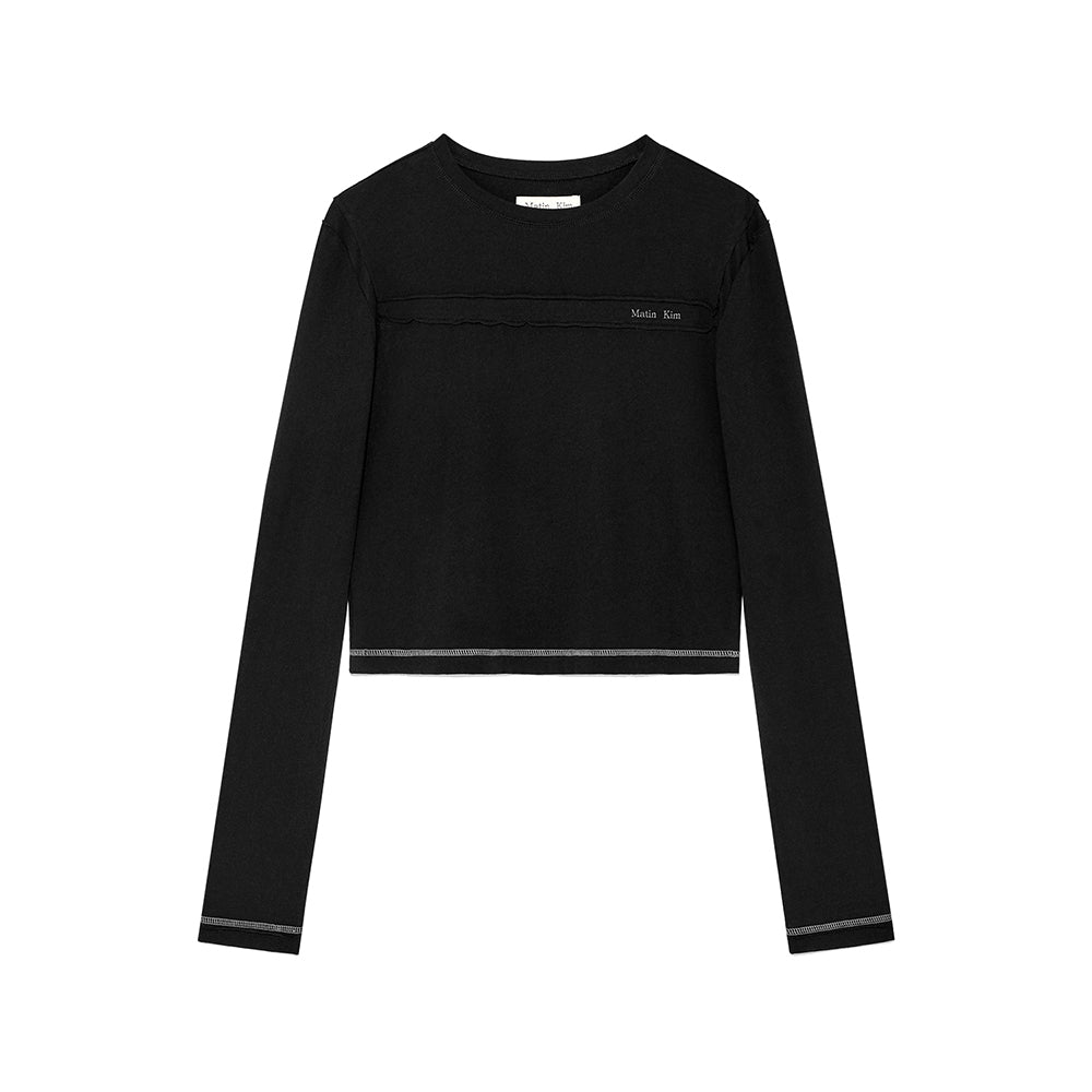CUT LINE DETAIL LONG SLEEVE LOGO TOP IN BLACK