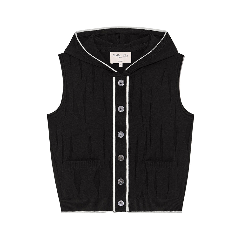 WRINKLE HOODY BUTTON KNIT VEST IN BLACK