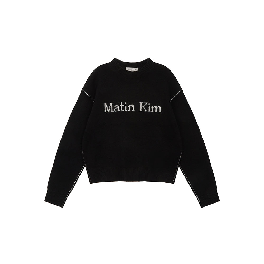COLOR LINE POINT LOGO KNIT PULLOVER IN BLACK