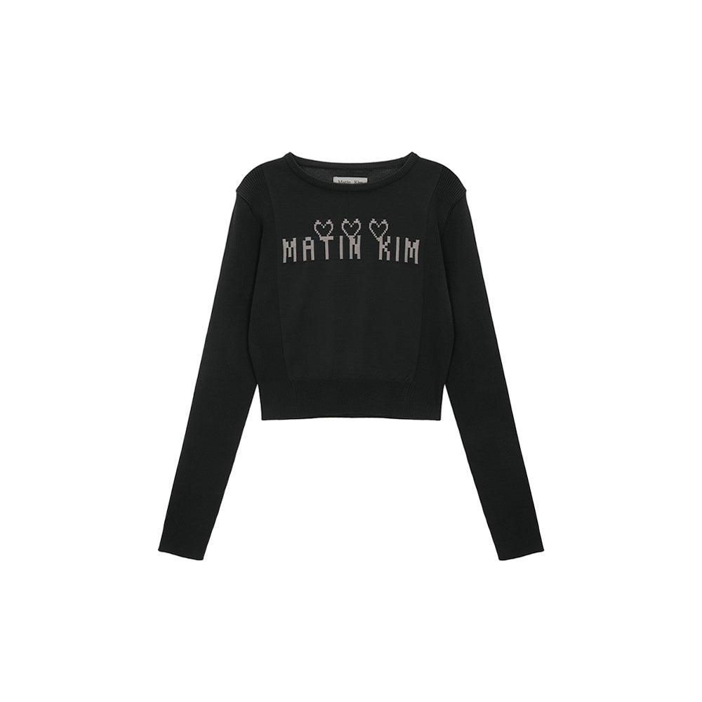 LOGO POINT JACQUARD KNIT CROP TOP IN CHARCOAL