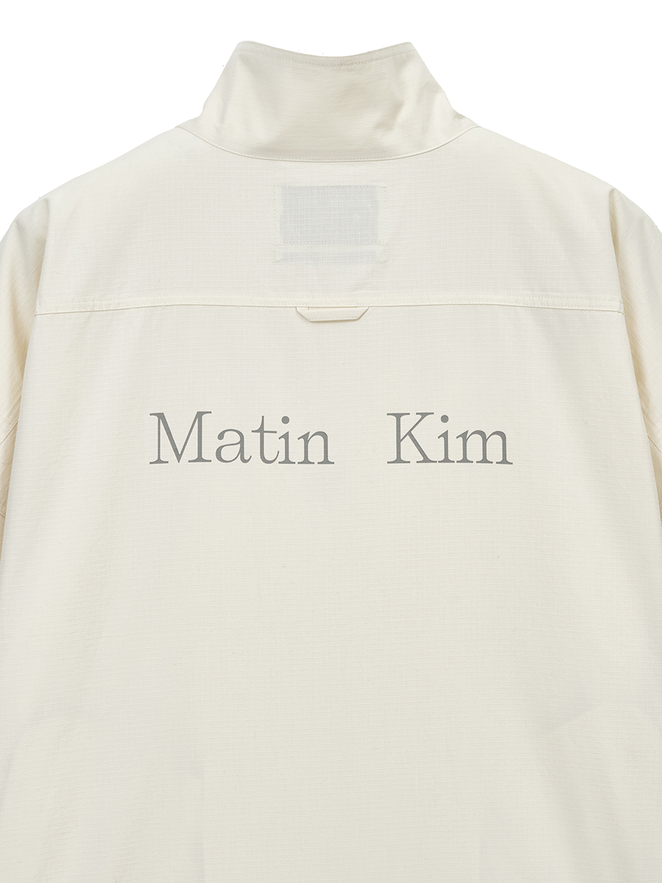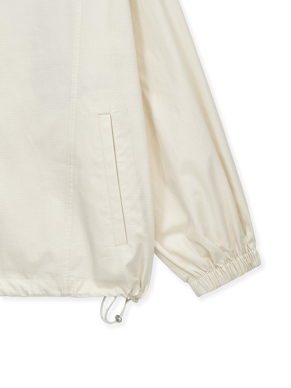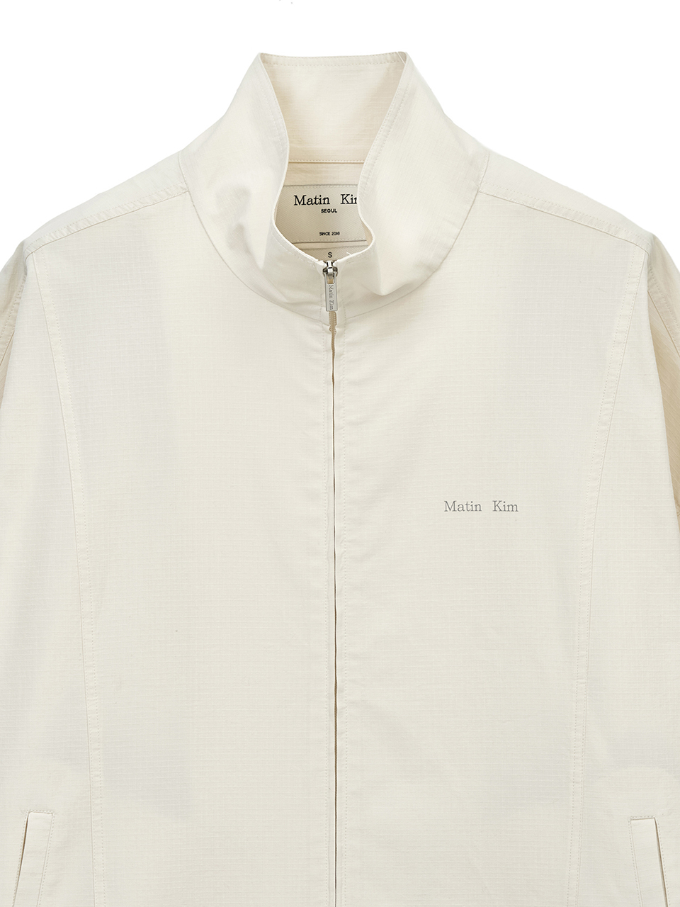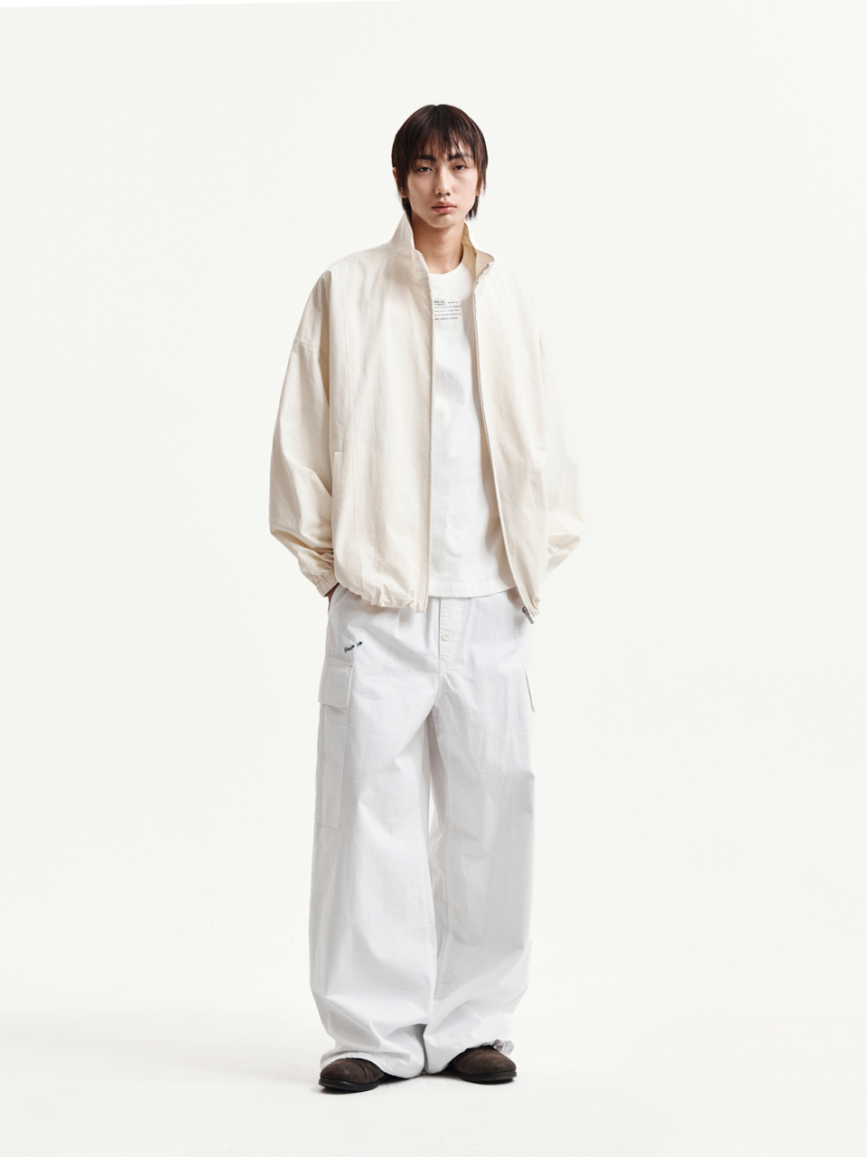 A high-neck oversized zip-up made from soft cotton, featuring logo accents on the front and back panels.