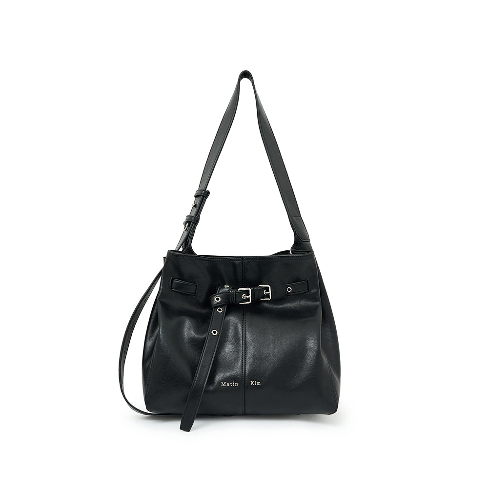 BUCKLE STRAP SHOULDER BAG IN BLACK