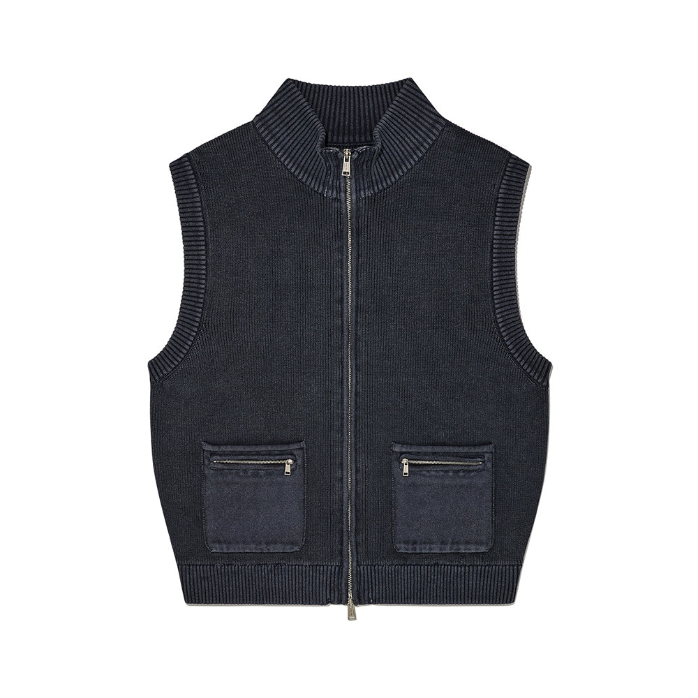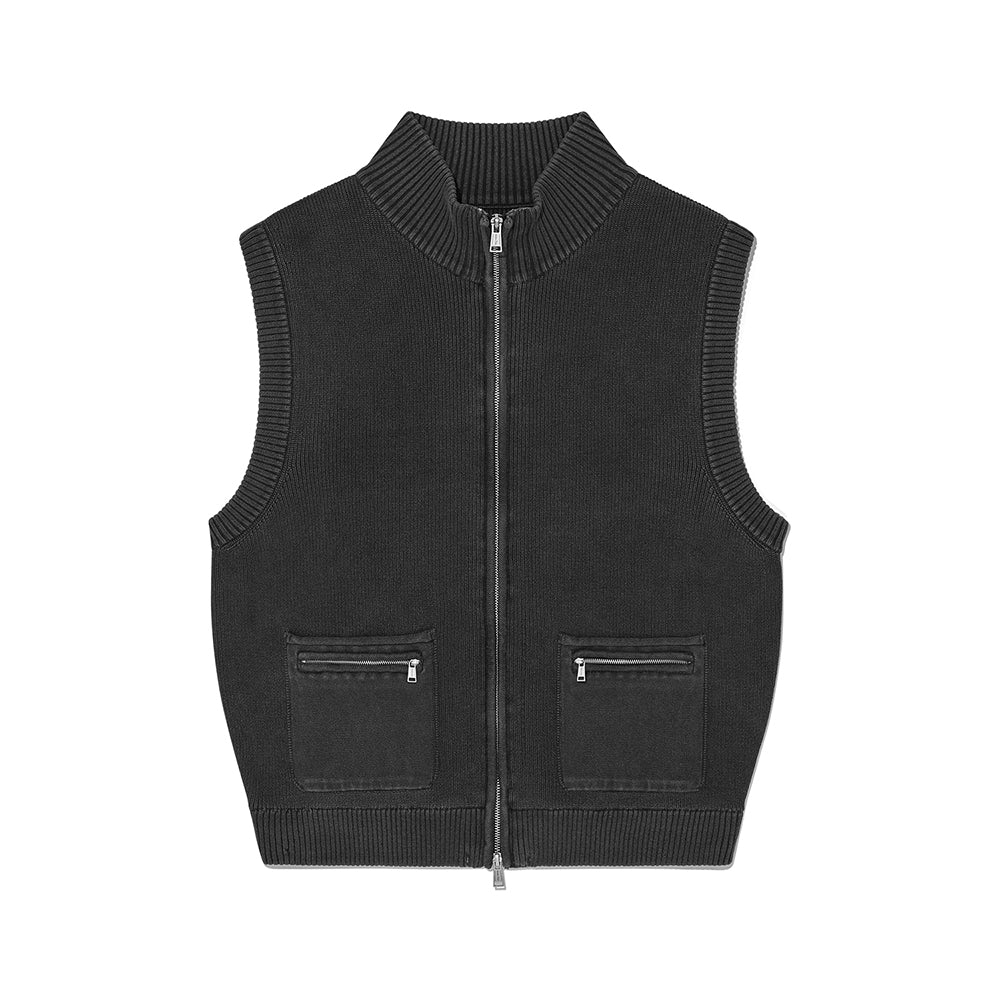 LOGO POINT WASHED KNIT VEST FOR MEN IN CHARCOAL