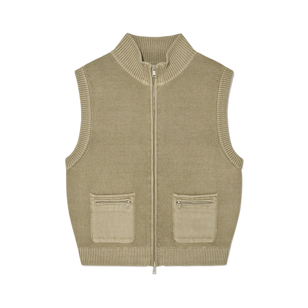 LOGO POINT WASHED KNIT VEST FOR MEN IN LIGHT KHAKI