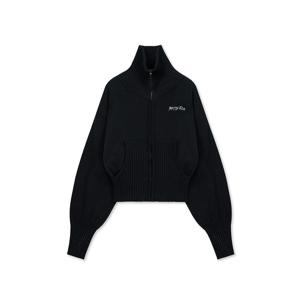 HIGH NECK EMBROIDERED LOGO ZIP UP FOR WOMEN IN BLACK