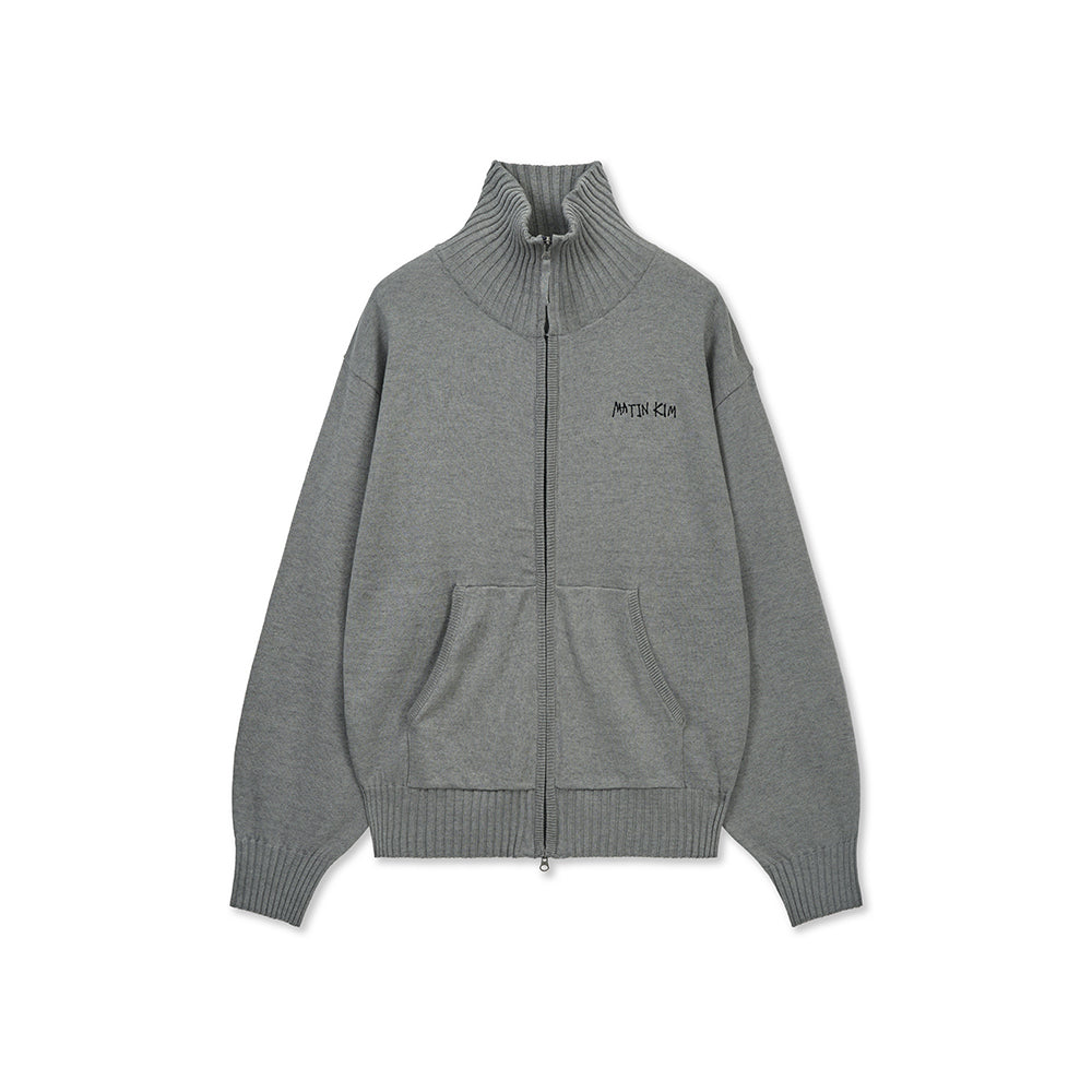 HIGH NECK EMBROIDERED LOGO ZIP UP FOR MEN IN GREY