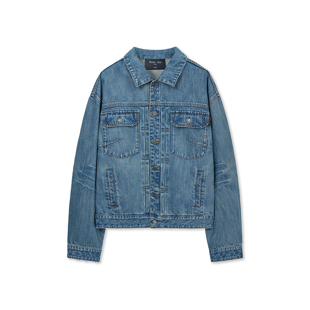 VINTAGE WASHED DENIM TRUCKER FOR MEN IN BLUE