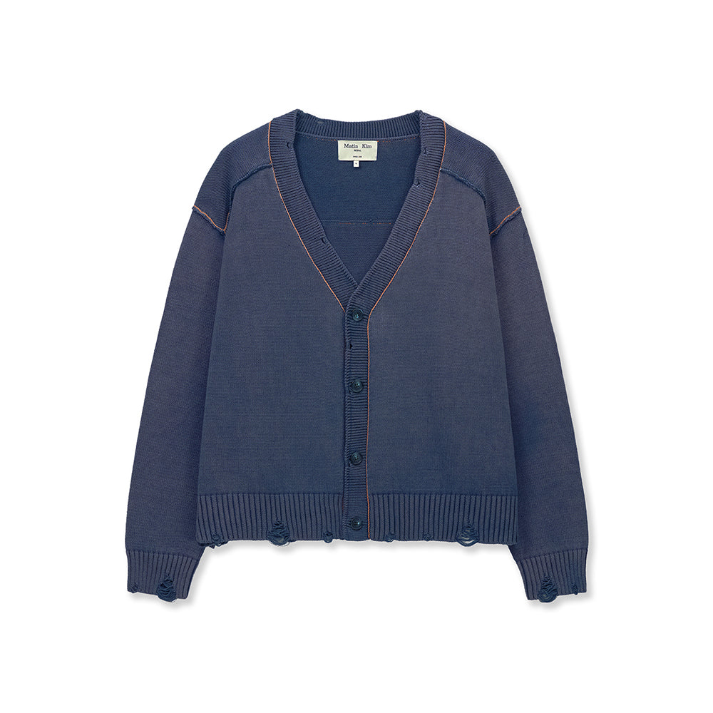BACK LOGO LINE POINT KNIT CARDIGAN IN SMOKE BLUE