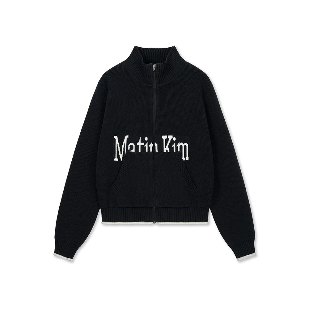 MATIN KIM SPELL POINT KNIT ZIP UP IN BLACK