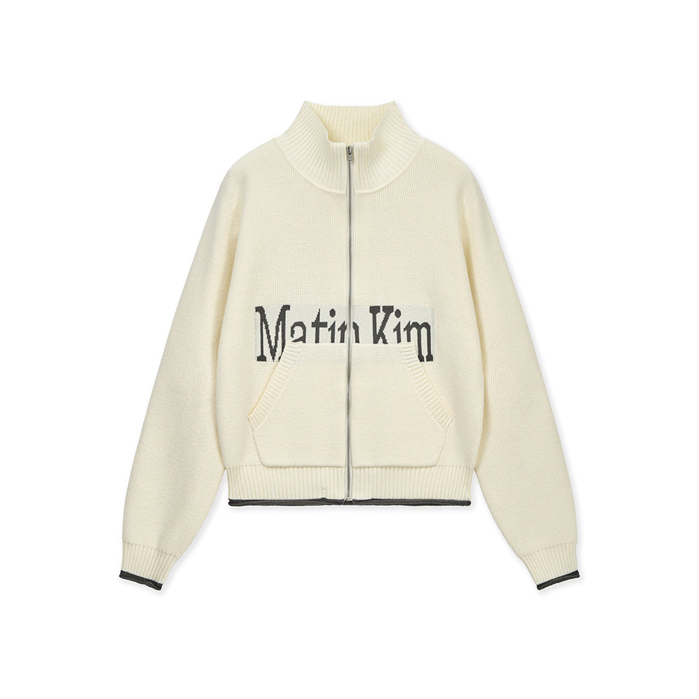 MATIN KIM SPELL POINT KNIT ZIP UP IN IVORY