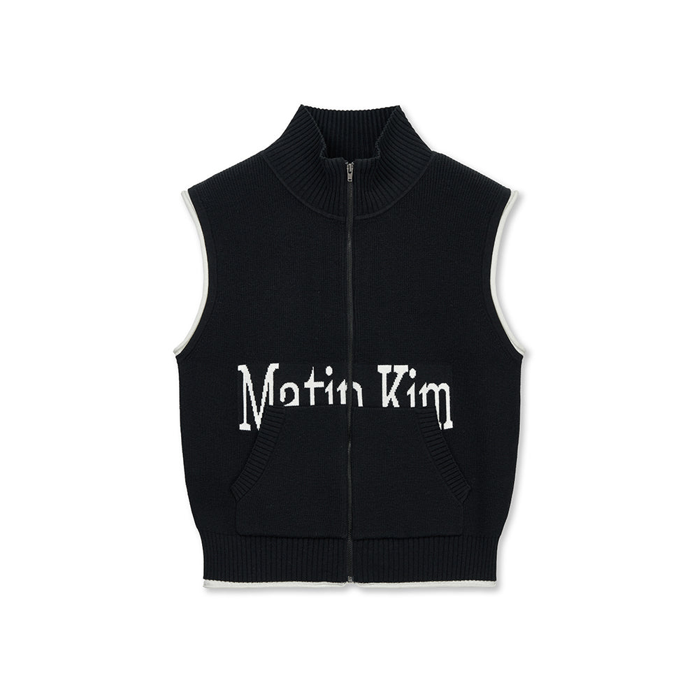 MATIN KIM SPELL POINT KNIT ZIP UP VEST IN BLACK