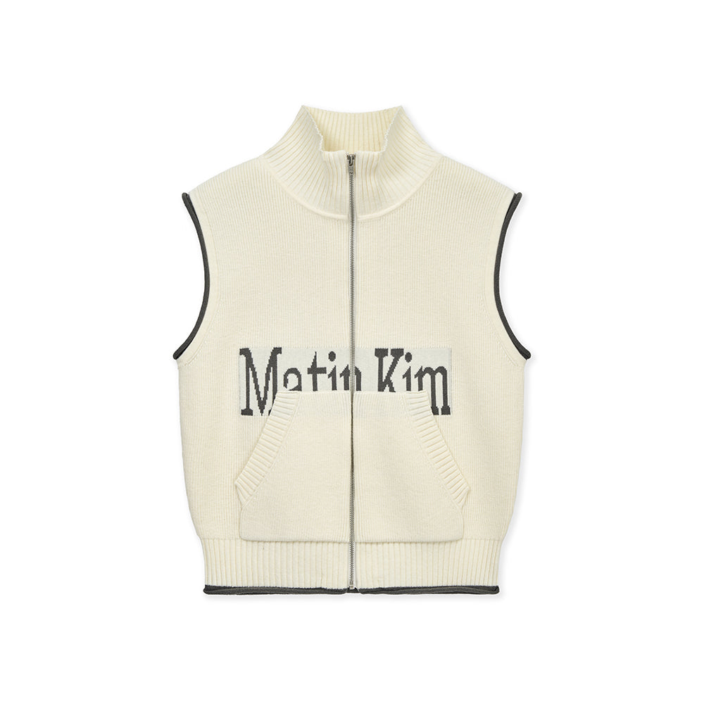 MATIN KIM SPELL POINT KNIT ZIP UP VEST IN IVORY