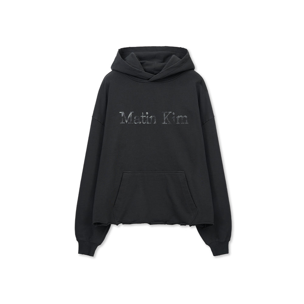 RAW EDGE HEM SWEAT HOODY IN CHARCOAL
