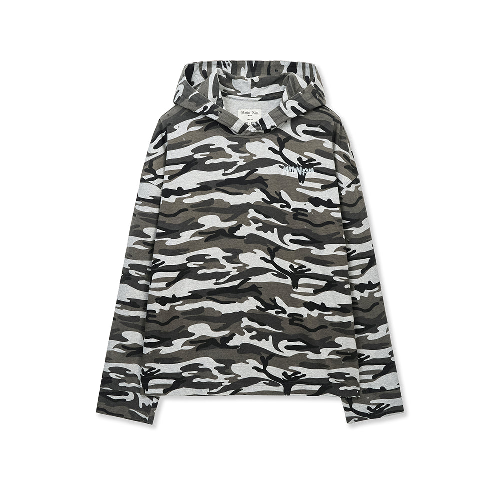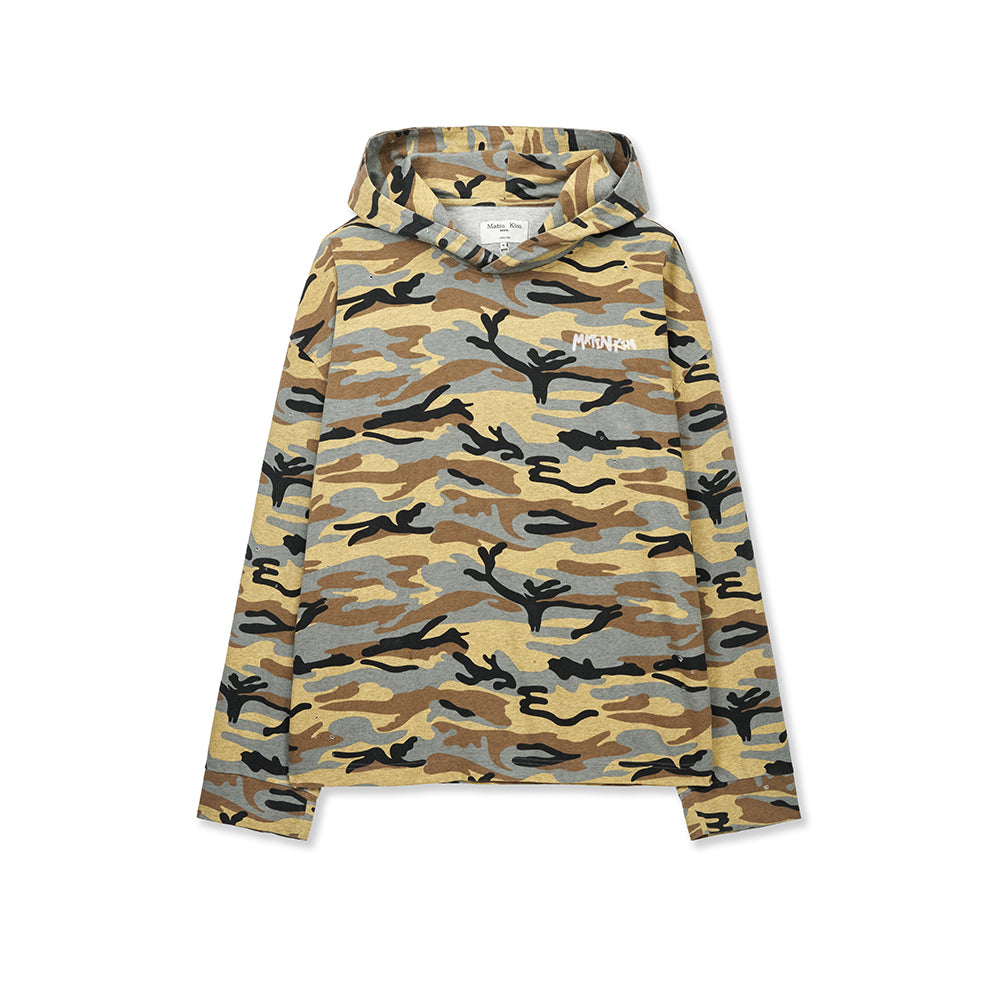 TYPO ARTWORK CAMOUFLAGE HOODY IN CAMEL