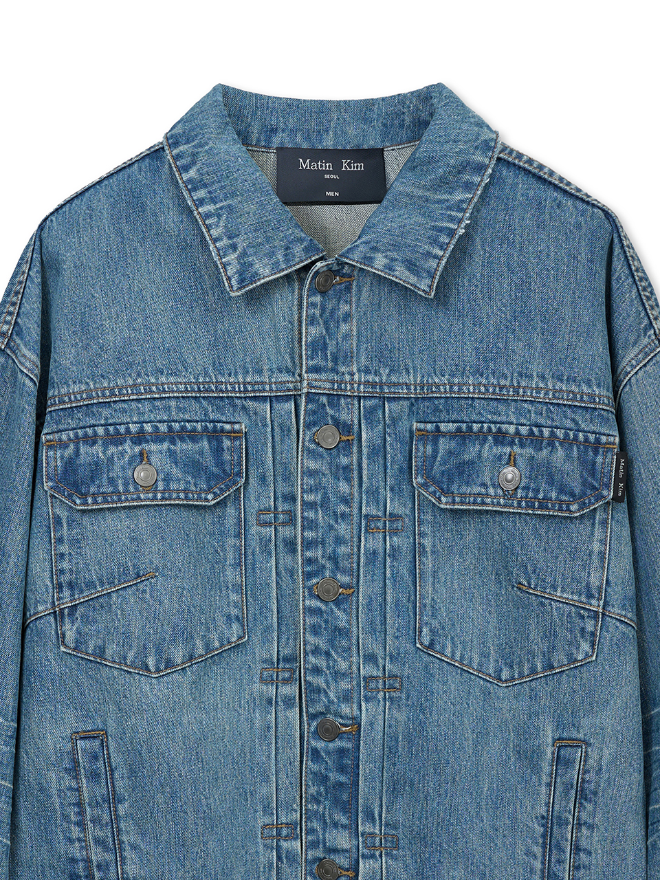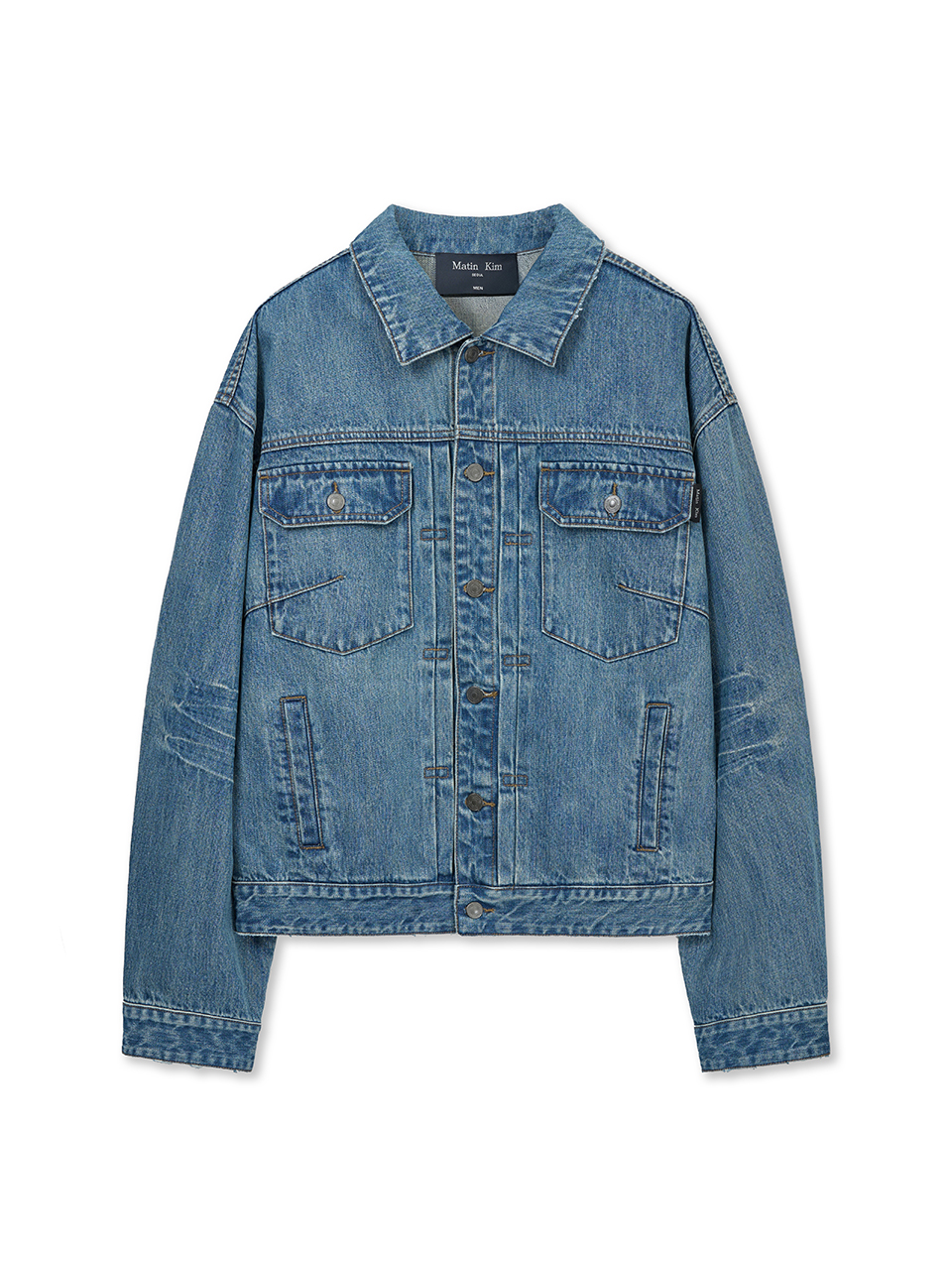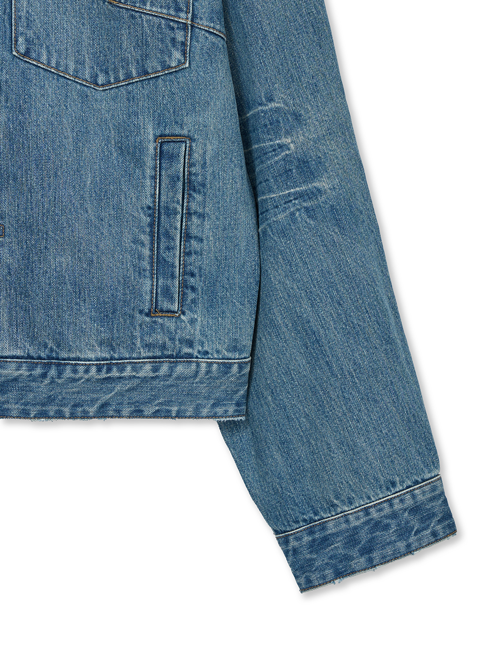 VINTAGE WASHED DENIM TRUCKER FOR MEN IN BLUE